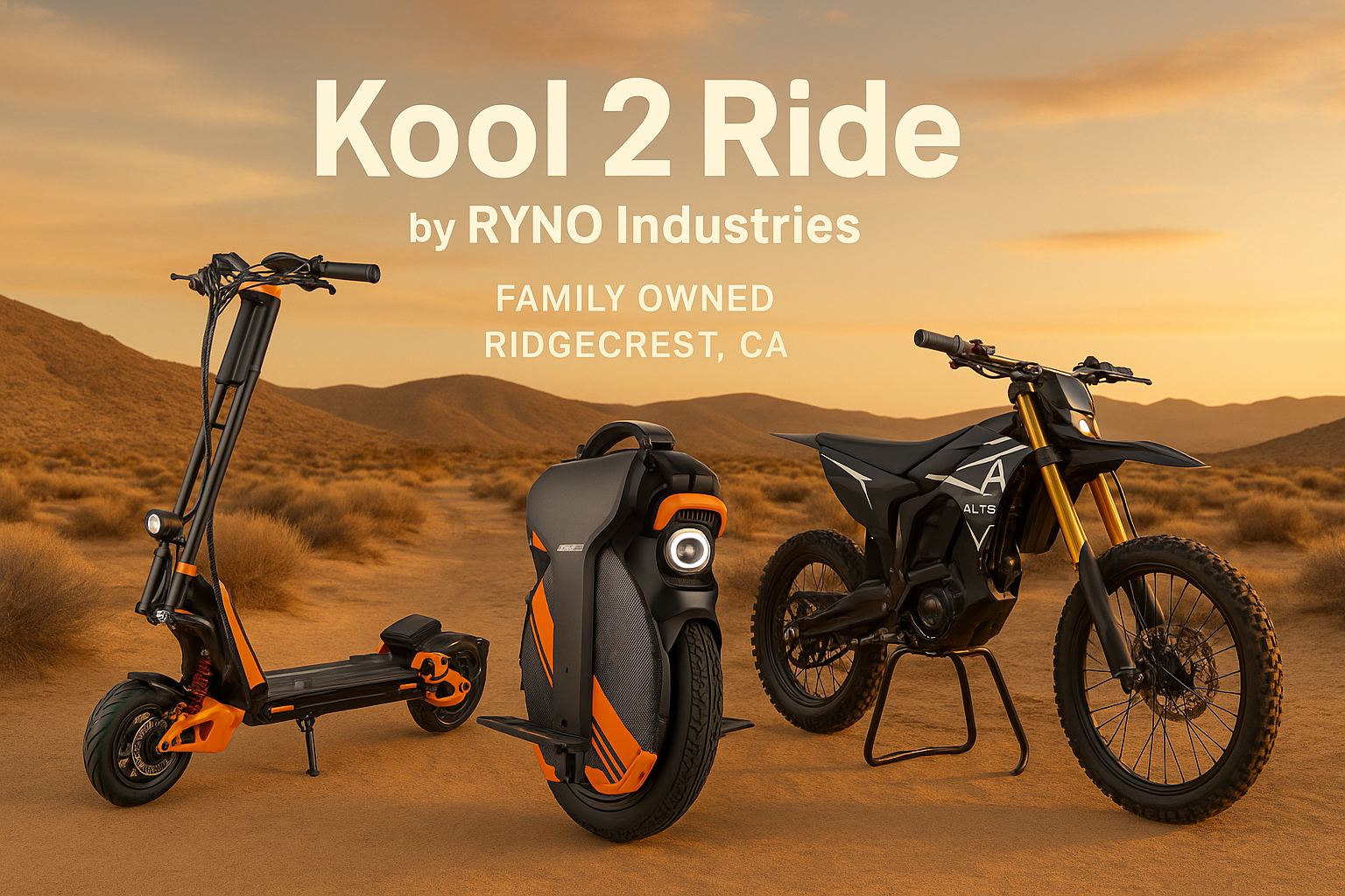 Proudly family-owned and based in Ridgecrest, California, we’re dedicated to bringing you the best in electric motorcycles, scooters, unicycles, and protective gear — all built for adventure, daily commutes, and everything in between.